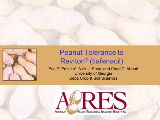 Peanut Tolerance to  RevitonŽ (tiafenacil)   <BR>Eric P. Prostko*, Nick J. Shay, and Chad C. Abbott  <BR>University of Georgia <BR>Dept. Crop & Soil Sciences<BR>