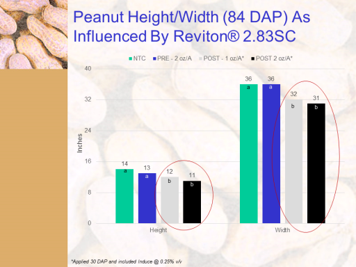 Peanut Height/Width (84 DAP) As Influenced By RevitonŽ 2.83SC<BR>*Applied 30 DAP and included Induce @ 0.25% v/v<BR>