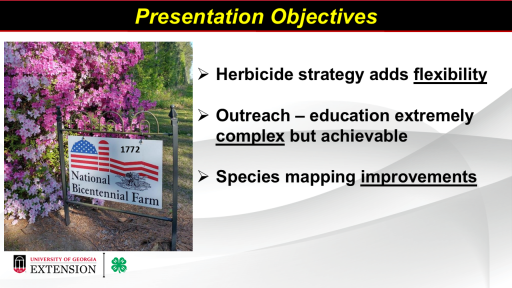 Presentation Objectives<BR>1772<BR>Herbicide strategy adds flexibility <BR> <BR>Outreach – education extremely complex but achievable <BR> <BR>Species mapping improvements <BR> <BR>