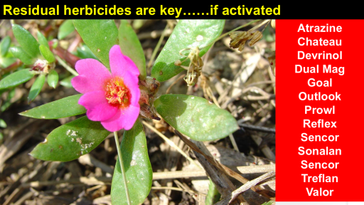 Residual herbicides are key……if activated <BR>Atrazine <BR>Chateau <BR>Devrinol <BR>Dual Mag <BR>Goal <BR>Outlook <BR>Prowl <BR>Reflex <BR>Sencor <BR>Sonalan <BR>Sencor <BR>Treflan <BR>Valor <BR>