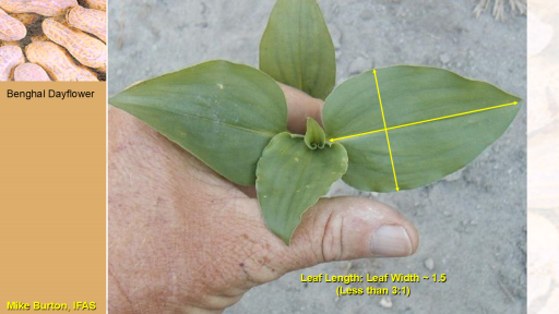 Leaf Length: Leaf Width ~ 1.5 <BR>(Less than 3:1)<BR>Mike Burton, IFAS<BR>Benghal Dayflower<BR>