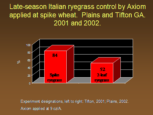 <BR>Axiom applied at 9 oz/A.<BR>84<BR>52<BR>Spike ryegrass<BR>2-leaf ryegrass<BR>