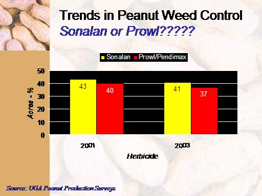 Trends in Peanut Weed ControlSonalan or Prowl?????<BR>Source: UGA Peanut Production Surveys<BR>