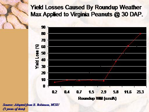 Yield Losses Caused By Roundup Weather Max Applied to Virginia Peanuts @ 30 DAP.<BR>Source: Adapted from B. Robinson, NCSU