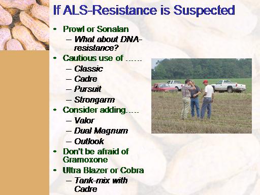 If ALS-Resistance is Suspected<BR>Prowl or Sonalan <BR>What about DNA-resistance? <BR>Cautious use of …… <BR>Classic <BR>Cadre <BR>Pursuit <BR>Strongarm <BR>Consider adding….. <BR>Valor <BR>Dual Magnum <BR>Outlook <BR>Don’t be afraid of Gramoxone <BR>Ultra Blazer or Cobra <BR>Tank-mix with Cadre <BR> <BR>