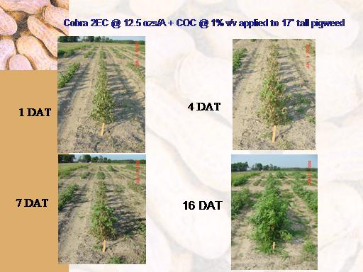 Cobra 2EC @ 12.5 ozs/A + COC @ 1% v/v applied to 17” tall pigweed<BR>1 DAT<BR>4 DAT<BR>7 DAT<BR>16 DAT<BR>