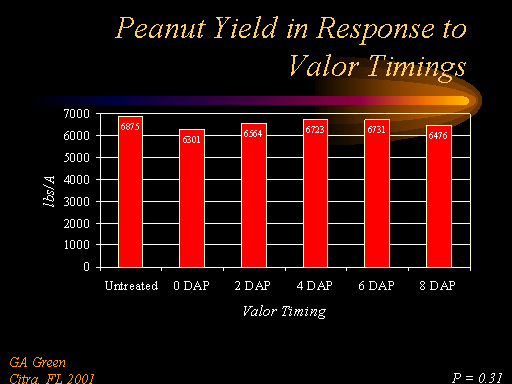 Peanut Yield in Response to Valor Timings<BR>GA Green