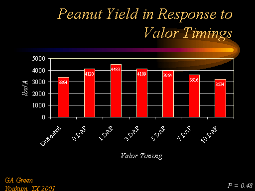 Peanut Yield in Response to Valor Timings<BR>GA Green