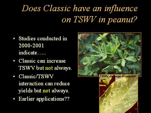Does Classic have an influence on TSWV in peanut?<BR>Studies conducted in 2000-2001 indicate…..