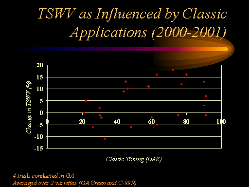 TSWV as Influenced by Classic Applications (2000-2001)<BR>4 trials conducted in GA