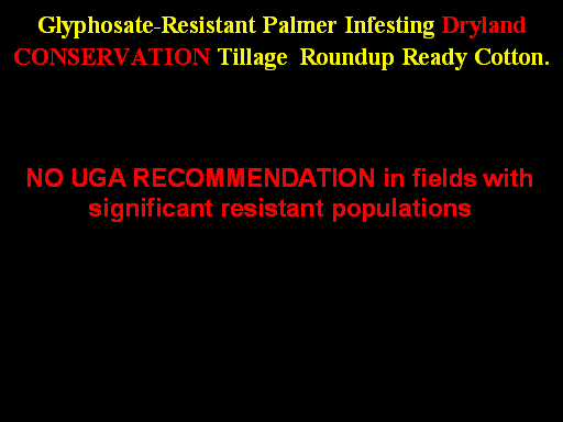 Glyphosate-Resistant Palmer Infesting Dryland           CONSERVATION Tillage  Roundup Ready Cotton.<BR>NO UGA RECOMMENDATION in fields with significant resistant populations<BR>