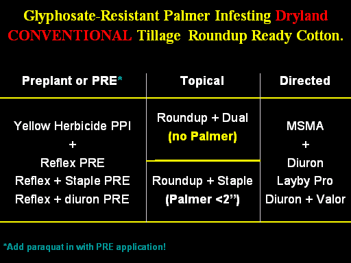 Glyphosate-Resistant Palmer Infesting Dryland           CONVENTIONAL Tillage  Roundup Ready Cotton.<BR>*Add paraquat in with PRE application!<BR>