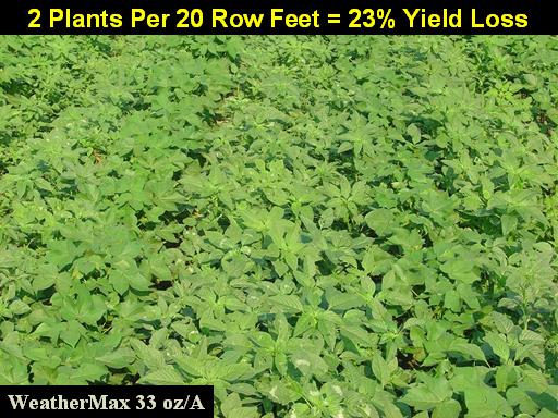 WeatherMax 33 oz/A<BR>2 Plants Per 20 Row Feet = 23% Yield Loss<BR>