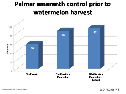 Palmer amaranth control prior to watermelon harvest <BR>