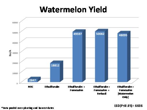 Watermelon Yield<BR>LSD(P=0.05)= 6696<BR>*Data pooled over planting and harvest dates <BR>