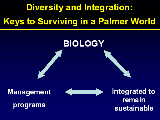 BIOLOGY<BR>    Integrated to remain sustainable<BR>Management <BR>programs<BR>Diversity and Integration:   <BR>Keys to Surviving in a Palmer World<BR>