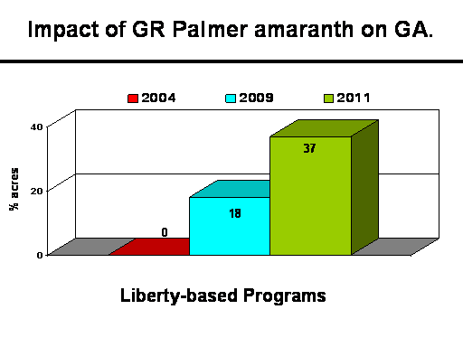 37<BR>18<BR>% acres<BR>Liberty-based Programs<BR>0<BR>Impact of GR Palmer amaranth on GA.<BR>