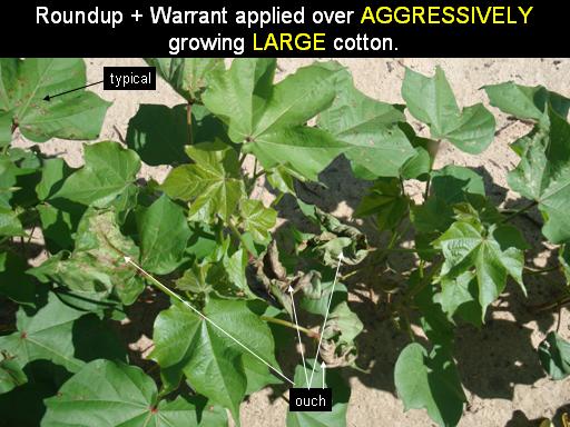 Roundup + Warrant applied over AGGRESSIVELY growing LARGE cotton.<BR>typical<BR>ouch<BR>