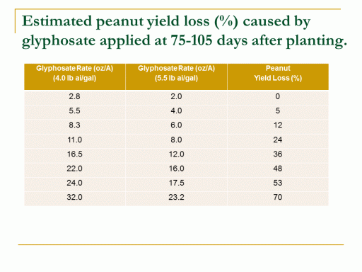 Estimated peanut yield loss (%) caused by glyphosate applied at 75-105 days after planting.<BR>
