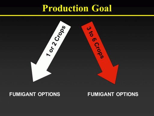 Production Goal<BR>3 to 6 Crops<BR>1 or 2 Crops<BR>FUMIGANT OPTIONS<BR>FUMIGANT OPTIONS<BR>