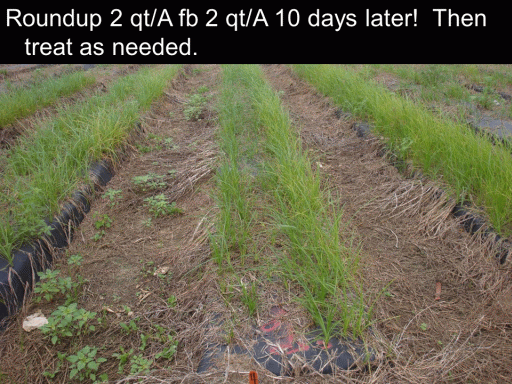 Roundup 2 qt/A fb 2 qt/A 10 days later!  Then treat as needed.<BR>