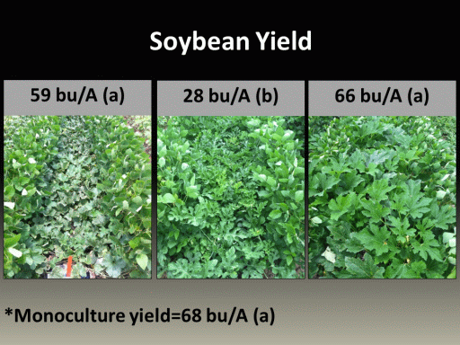 Soybean Yield<BR>66 bu/A (a)   <BR> <BR>*Monoculture yield=68 bu/A (a)<BR>