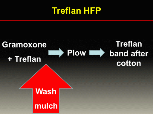 Treflan HFP<BR>Gramoxone  <BR>+ Treflan<BR>Plow<BR>Treflan band after cotton<BR>Wash <BR>mulch<BR>