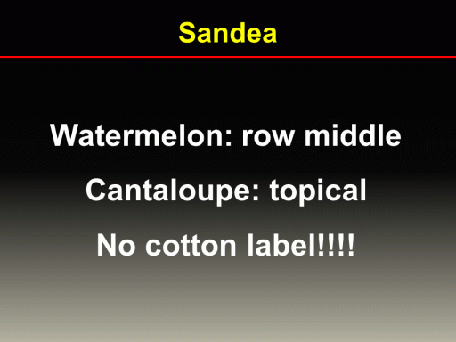 Sandea<BR>Watermelon: row middle <BR>Cantaloupe: topical <BR>No cotton label!!!! <BR>