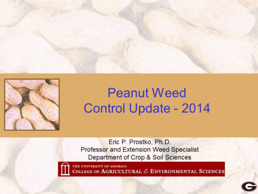 Peanut Weed  Control Update - 2014<BR>Eric P. Prostko, Ph.D. <BR>Professor and Extension Weed Specialist <BR>Department of Crop & Soil Sciences<BR>