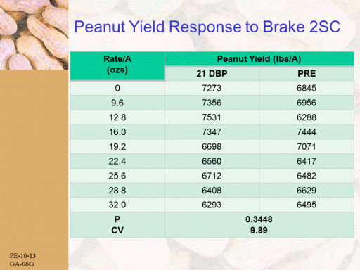 Peanut Yield Response to Brake 2SC<BR>PE-10-13 <BR>GA-06G<BR>