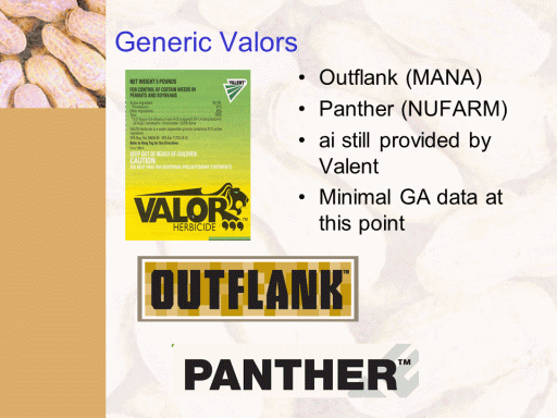 Generic Valors<BR>Outflank (MANA) <BR>Panther (NUFARM) <BR>ai still provided by Valent <BR>Minimal GA data at this point<BR>