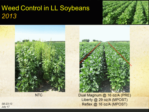 Weed Control in LL Soybeans 2013<BR>SB-23-13 <BR>July 17<BR>NTC<BR>Dual Magnum @ 16 oz/A (PRE) <BR>Liberty @ 29 oz/A (MPOST) <BR>Reflex @ 16 oz/A (MPOST)<BR>
