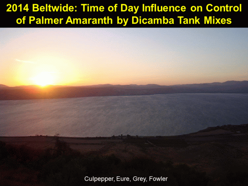 2014 Beltwide: Time of Day Influence on Control of Palmer Amaranth by Dicamba Tank Mixes<BR>Culpepper, Eure, Grey, Fowler<BR>