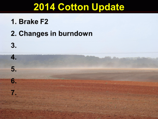 2014 Cotton Update<BR> Brake F2 <BR> Changes in burndown <BR>  <BR>  <BR>  <BR>  <BR> <BR>