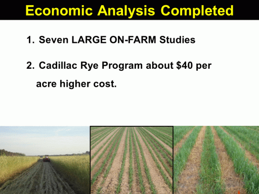 Economic Analysis Completed<BR> Seven LARGE ON-FARM Studies <BR> Cadillac Rye Program about $40 per acre higher cost.<BR>