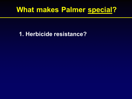 What makes Palmer special? <BR>Herbicide resistance? <BR>