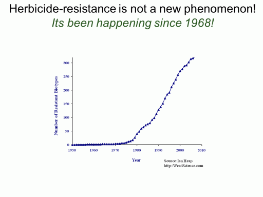 Herbicide-resistance is not a new phenomenon! Its been happening since 1968!<BR>
