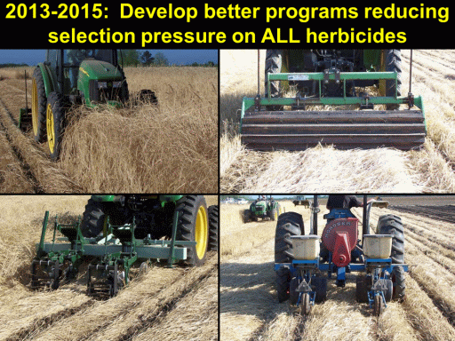 2013-2015:  Develop better programs reducing selection pressure on ALL herbicides<BR>