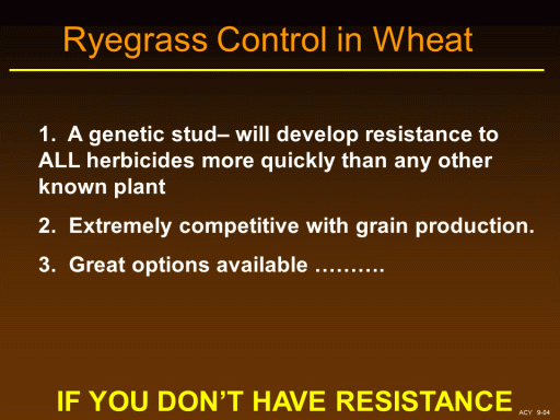 IF YOU DON’T HAVE RESISTANCE<BR>1.  A genetic stud– will develop resistance to ALL herbicides more quickly than any other known plant <BR>2.  Extremely competitive with grain production. <BR>3.  Great options available ……….<BR>