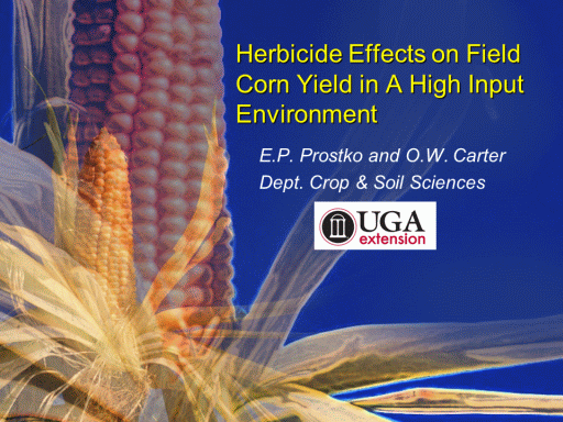 E.P. Prostko and O.W. Carter <BR>Dept. Crop & Soil Sciences <BR>Herbicide Effects on Field Corn Yield in A High Input Environment <BR>