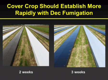 Cover Crop Should Establish More Rapidly with Dec Fumigation<BR>2 weeks<BR>3 weeks<BR>