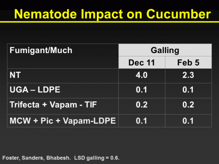 Nematode Impact on Cucumber<BR>Foster, Sanders, Bhabesh.  LSD galling = 0.6.  <BR>