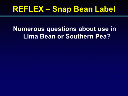 REFLEX – Snap Bean Label<BR>Numerous questions about use in Lima Bean or Southern Pea? <BR>