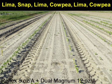 Lima, Snap, Lima, Cowpea, Lima, Cowpea <BR>Reflex 8 oz/A + Dual Magnum 12 oz/A<BR>