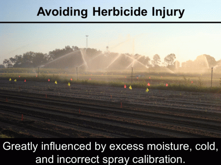 Avoiding Herbicide Injury<BR>Greatly influenced by excess moisture, cold, and incorrect spray calibration. <BR>