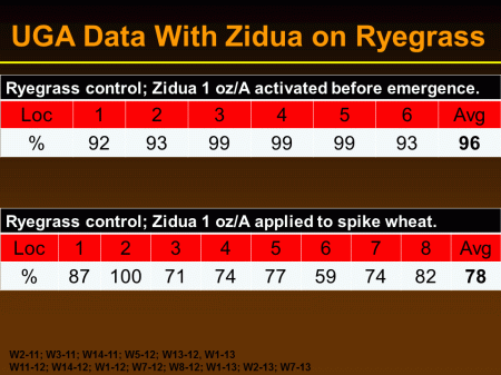UGA Data With Zidua on Ryegrass<BR>W2-11; W3-11; W14-11; W5-12; W13-12, W1-13 <BR>W11-12; W14-12; W1-12; W7-12; W8-12; W1-13; W2-13; W7-13<BR>