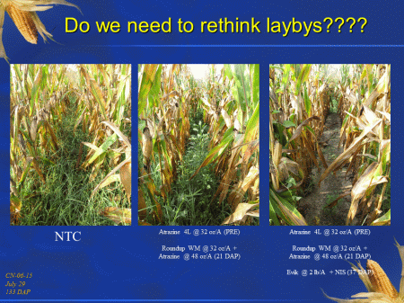 Do we need to rethink laybys????<BR>CN-06-15 <BR>July 29 <BR>133 DAP<BR>NTC<BR>Atrazine 4L @ 32 oz/A (PRE) <BR> <BR>Roundup WM @ 32 oz/A + <BR>Atrazine @ 48 oz/A (21 DAP)<BR>Atrazine 4L @ 32 oz/A (PRE) <BR> <BR>Roundup WM @ 32 oz/A + <BR>Atrazine @ 48 oz/A (21 DAP) <BR> <BR>Evik @ 2 lb/A  + NIS (37 DAP)<BR>
