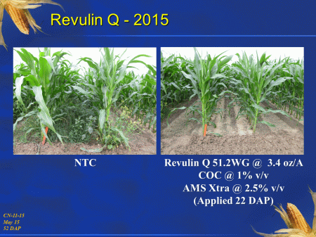 Revulin Q - 2015<BR>NTC<BR>Revulin Q 51.2WG @  3.4 oz/A <BR>COC @ 1% v/v <BR>AMS Xtra @ 2.5% v/v <BR>(Applied 22 DAP)<BR>CN-11-15 <BR>May 15 <BR>52 DAP<BR>