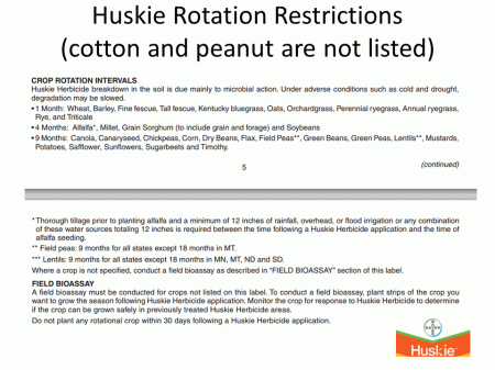 Huskie Rotation Restrictions (cotton and peanut are not listed)<BR>