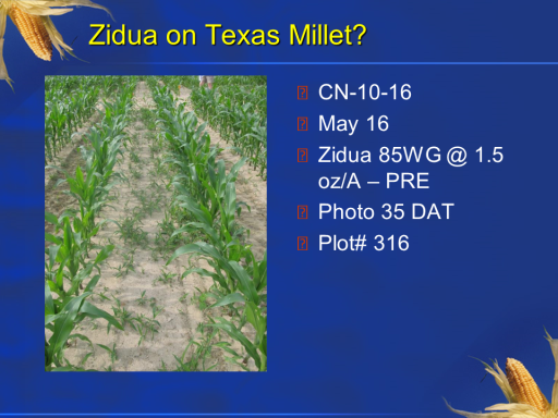 Zidua on Texas Millet?<BR>CN-10-16 <BR>May 16 <BR>Zidua 85WG @ 1.5 oz/A – PRE <BR>Photo 35 DAT <BR>Plot# 316<BR>